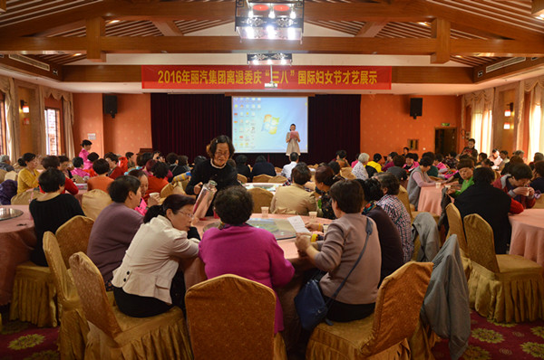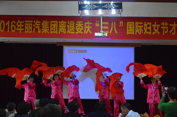 為慶祝第106個國際婦女節(jié),展示離退休女職工的風采,今天上午,麗汽集團離退委在八一賓館舉行慶“三八”國際婦女節(jié)才藝展示活動,260余名離退休女職工表演了扇子舞、排舞、詩朗誦、太極表演、獨唱、合唱、腰鼓、三句半等節(jié)目,既展示了離退休職工的精神風貌,也展示了他們豐富多彩的退休生活。全體人員起立合唱的一曲《革命人永遠是年輕》將活動推向了高潮。