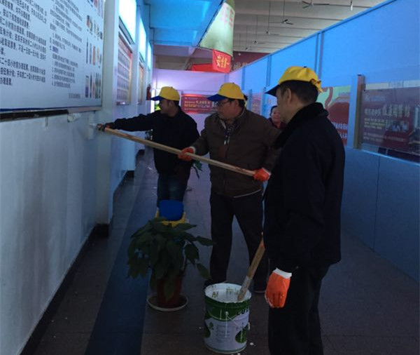 車站由于其特殊性,每天來往的旅客較多,流動性較強。各種原因?qū)е潞蜍噺d、售票廳、發(fā)車區(qū)等區(qū)域的墻壁上留下各式各樣無法擦拭的印痕。隨著文明城市創(chuàng)建“國測”迎檢工作的開始,東站黨員志愿者主動放棄周末的休息時間,對重點區(qū)塊的墻壁進(jìn)行刷白和整個場地衛(wèi)生死角的清掃。