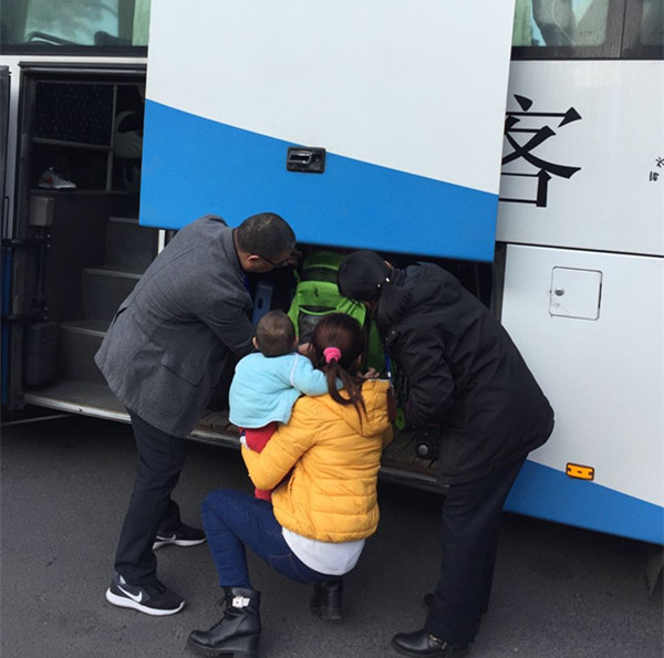 看年輕媽媽在艱難的調(diào)整著嬰兒車(chē)前進(jìn)的方向,周麗梅趕緊上前,“我來(lái)幫你推吧。”她順勢(shì)接過(guò)了嬰兒車(chē)。傍晚的高鐵配載點(diǎn)已經(jīng)早早不見(jiàn)了太陽(yáng)的蹤影,室外的溫度又低,風(fēng)又大。陰冷的寒風(fēng)吹得人陣陣發(fā)冷,周麗梅拉了拉衣領(lǐng)徑直將嬰兒車(chē)推向麗水到松陽(yáng)的班車(chē)前,使出全力一鼓作氣將嬰兒車(chē)上的行李放入行李倉(cāng),再將嬰兒車(chē)折疊好后也放了進(jìn)去。放好后周麗梅還不忘交代正在忙的駕駛員,下車(chē)時(shí)幫這位年輕媽媽卸下行李。年輕媽媽站在邊上一個(gè)勁地說(shuō)著謝謝,她懷中的小寶貝在媽媽的感染下,也雙手作揖對(duì)周麗梅表達(dá)著謝意。