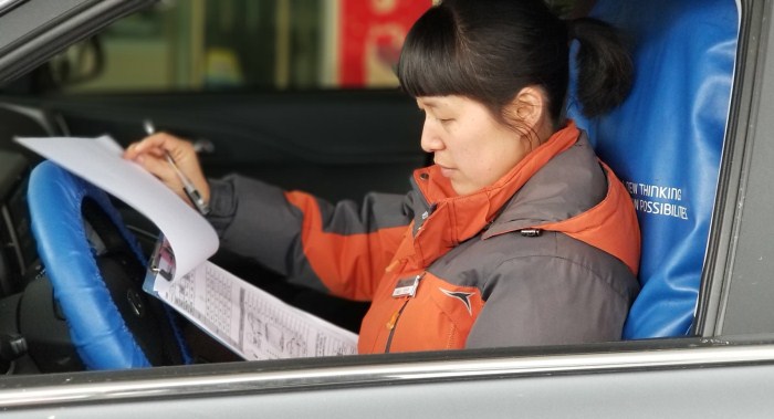 葉柳笑負(fù)責(zé)事故車接待。今年春節(jié)后,由于道路車流量大,事故車數(shù)量驟然變多,葉柳笑忙碌的身影在車間和接待處兩頭跑,連續(xù)的繁重工作她累病了。但她還是堅(jiān)守在崗位上,直到售后經(jīng)理強(qiáng)制要求她回家休息,她也僅休息了一天。她說,大家都這么忙,我在家里真的是坐立不安啊。