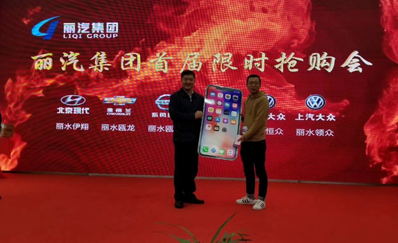活動結(jié)束前,麗汽集團(tuán)總經(jīng)理薛和有為大家抽取了iPhoneX獲獎?wù)?,廣汽傳祺用戶最終獲得現(xiàn)場大獎!