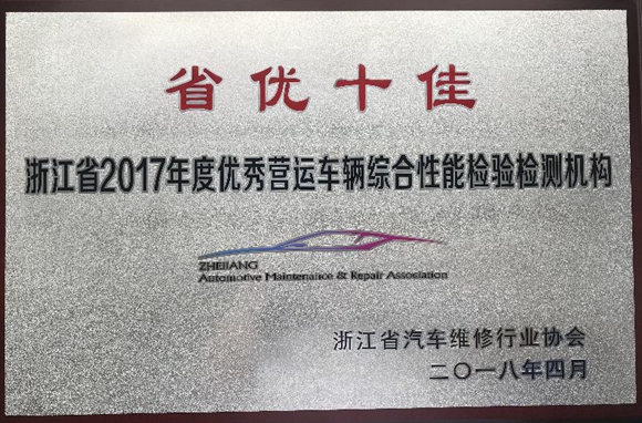 暨浙江省2017年度優(yōu)秀營運車輛綜合性能檢驗檢測機構(gòu)