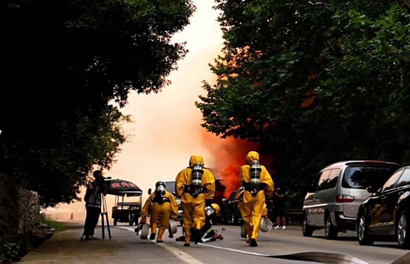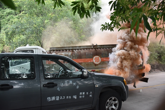 這是在2018年度麗水市道路運(yùn)輸突發(fā)事件應(yīng)急處置演練現(xiàn)場(chǎng)發(fā)生的“驚險(xiǎn)”一幕。