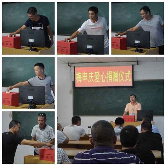 6月29日下午3時,愛心捐款儀式在汽校教室舉行。校領(lǐng)導(dǎo)帶頭捐款,汽校教練員工也積極參加,大家都踴躍地為梅申慶向上了自己的一份愛心,還有兩位學(xué)員還專門托教練捎來了捐款。短短幾分鐘內(nèi),就為梅申慶募捐到愛心款 3055元。汽校的金健飛校長更是在第一時間將這份汽校家人的關(guān)愛送到了在醫(yī)院接受化療的梅申慶手中。