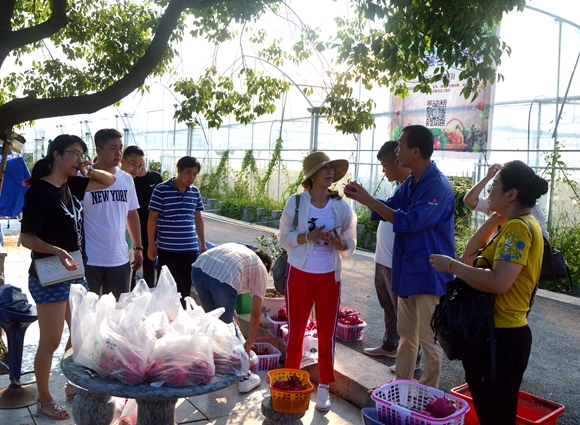 在缸窯村火龍果采摘基地,工作人員向大家介紹了基地火龍果的無公害種植模式和火龍果果肉、果皮以及花朵的食用價值。工會主席(組長)們也親自體驗了一把火龍果的采摘。看著枝頭紅艷誘人的果實,大家臉上掛滿了的豐收喜悅。