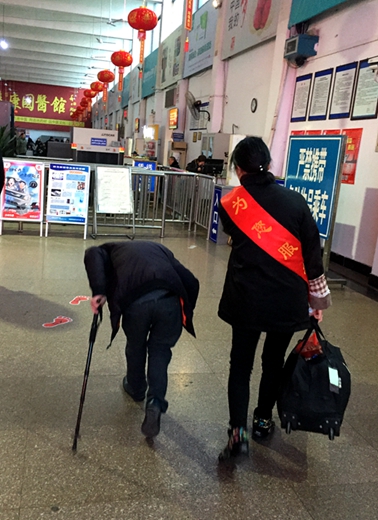2月15日春運還在繼續(xù),我們的溫情故事仍在上演。13:00,東站的服務(wù)臺還是有些忙碌,服務(wù)員鄭淑燕剛為一位旅客辦完行包寄存,突然聽到一聲“這里能買票嗎?”鄭淑燕隨即環(huán)顧四周,卻看不到一個人,“哪里發(fā)出的聲音?”正當(dāng)鄭淑燕納悶時,服務(wù)臺上出現(xiàn)了一只手拿一張百元鈔票的手,鄭淑燕隨即探頭去看,一個彎著背,身材矮小的中年男子出現(xiàn)在鄭淑燕面前。在問清了該旅客要去的目的地后,鄭淑燕到售票窗幫他買好了車票,看到他還有一個包,鄭淑燕主動提出幫他提包,送他上車。旅客客氣地說:“不用了,我慢慢走可以拎得動的?!笨粗粤Φ貥幼?,鄭淑燕二話不說,從他手中接過包,跟在他旁邊慢慢地走,一直送他到檢票口。到了檢票口,鄭淑燕又交代檢票員檢票時幫助這名旅客先檢票上車。