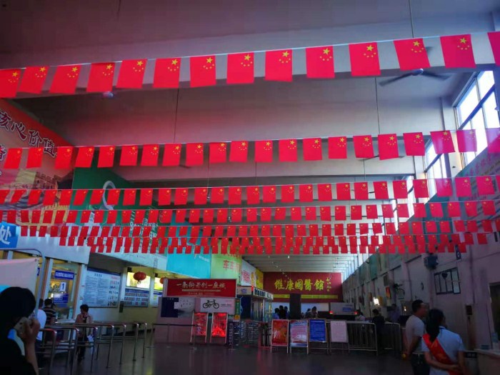 今年是中華人民共和國成立70周年,為團(tuán)結(jié)動員廣大黨員干部和員工以極大熱情投身到車站的工作中,客運(yùn)東站在候車廳、站場以懸掛國旗為主導(dǎo),配合彩旗和燈籠、鮮花,營造莊嚴(yán)肅穆的國慶氛圍,讓出行的旅客感受到濃厚的節(jié)日氣氛。