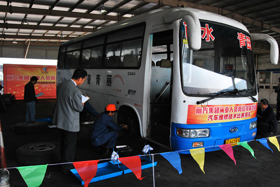 11月13日上午9點整,汽車維修技術比賽在快客分公司修理車間舉行,快客分公司修理車間和客長運分公司修理車間各派出4名選手,選手根據(jù)抽簽,完成前橋、后橋作業(yè)??炜头止纠罱ú?、客長運分公司武賢強、快客分公司管巧全分獲前三名。