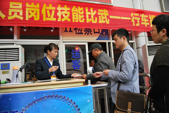 站售操作比賽11月14日晚,在旅游集散中心舉行??瓦\東站、客運西站分別派出4名選手參賽。經(jīng)過角逐,客運西站封慧麗、客運東站魏麗、客運西站林莉分獲前3名。