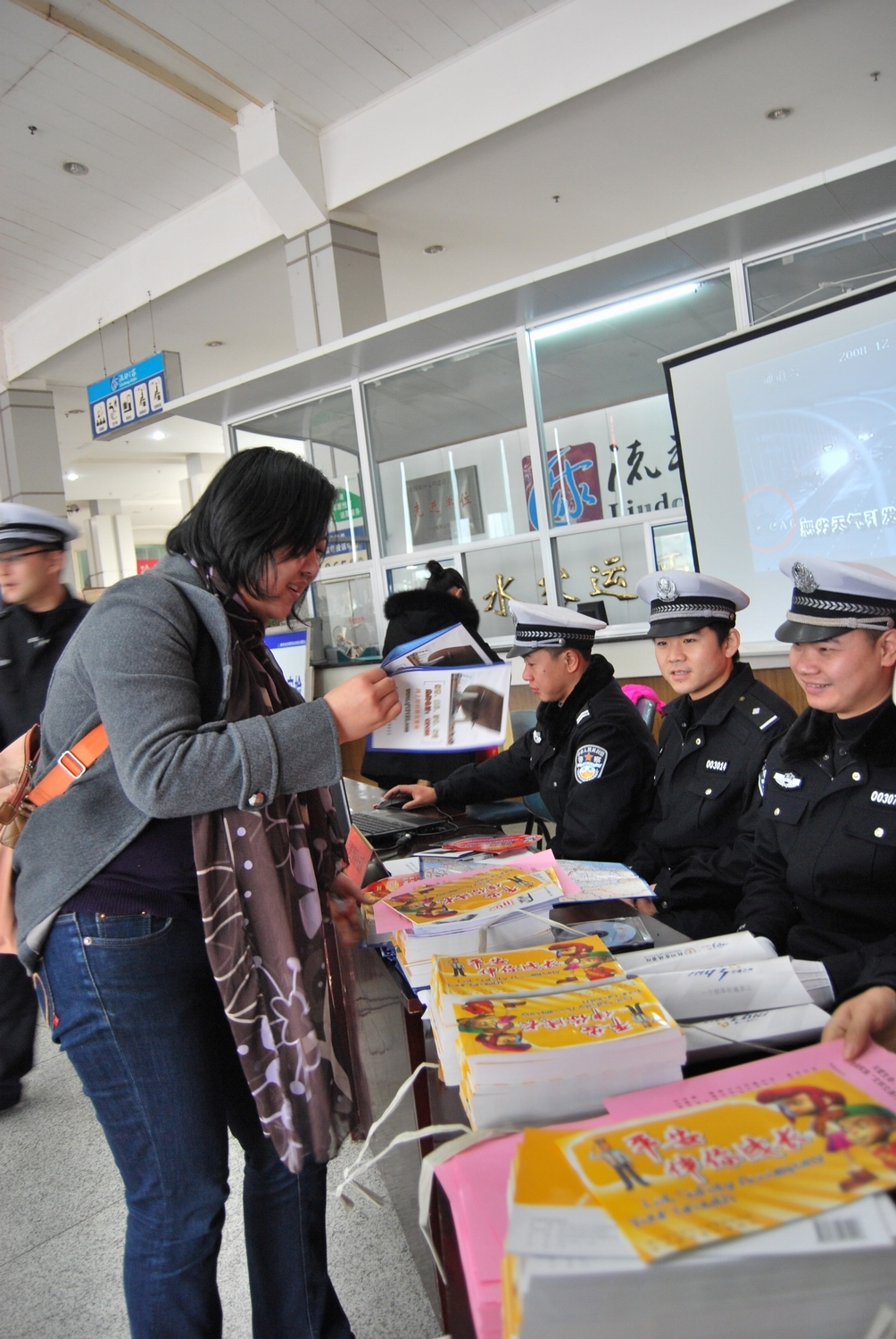 此次活動以“關愛生命、文明出行”為主題,交警部門準備了《平安伴你成長》、《道路交通事故警示錄》、《浙江省高速公路指南》等圖冊進行發(fā)放,市交警隊的同志特意將《關愛生命、文明出行--全國實施“文明交通行動計劃”倡議書》送到候車旅客手中,市運管處、交通音樂頻道、高速交警支隊還進行了春聯(lián)、“福”字和平安符現(xiàn)場贈送,向過往旅客送出新年祝福。