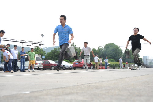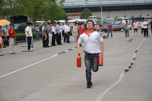 各分公司、子公司的11支義務(wù)消防隊參加了消防接力比賽。經(jīng)過角逐,集團(tuán)本部、伊翔公司、客運東站分獲比賽前三名。