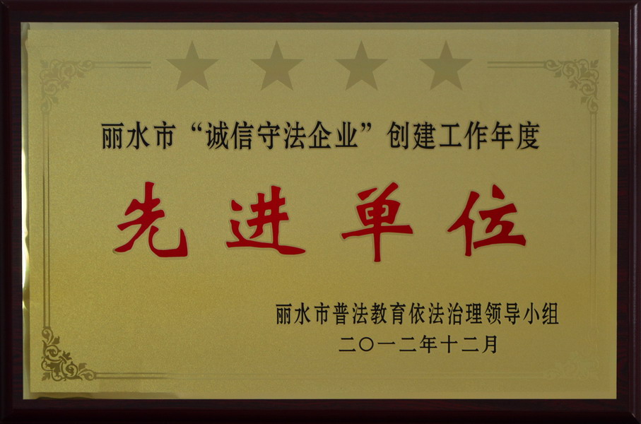2012年麗水市“誠信守法企業(yè)”創(chuàng)建工作年度先進單位