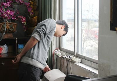 檢查人員對開關插座進行仔細檢查