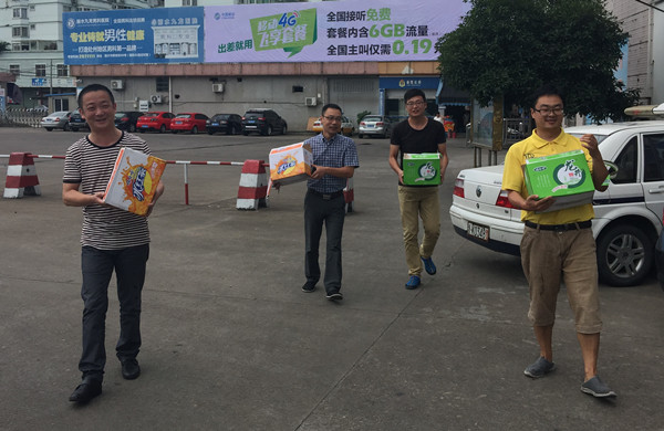 經(jīng)理梁巍、副經(jīng)理王斌、計財科科長厲志南和運務科的蔡亞飛各捧著一箱冷飲去送清涼。