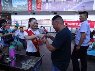 這幾天,麗水最高氣溫持續(xù)在39-40攝氏度之間,炎熱的太陽悶得讓人透不過氣。為做好防暑降溫工作,東站黨政領導結合實際,決定推出一項溫馨服務:免費為旅客送涼茶。選用茶葉、白菊花、金銀花等原料精心泡制清涼解暑的涼茶,組織服務人員在東站候車室免費提供給來往的旅客和司乘人員,將絲絲涼意送到每一位出行旅客的心坎上。