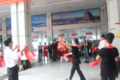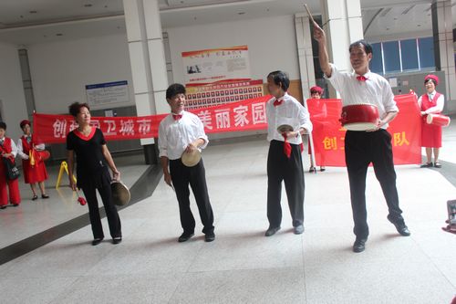 節(jié)目的內容有腰鼓、三句半、快板等,宣傳隊員認真的表演,引來不少乘車旅客駐足觀看。通過這樣的宣傳活動,將創(chuàng)衛(wèi)受益你我他這個理念傳遞給大家,同時營造人人關心創(chuàng)衛(wèi),支持創(chuàng)衛(wèi)的良好氛圍。