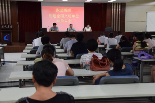 8月19日晚,客運西站組織全體員工召開了“創(chuàng)建全國文明單位動員大會”。