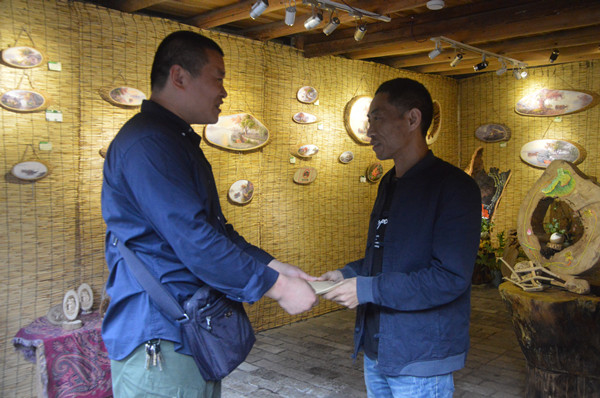 章雙林告訴雷發(fā)榮,這個(gè)錢是他去年到北京人民大會(huì)堂接受“全國(guó)見(jiàn)義勇為英雄司機(jī)”頒獎(jiǎng)時(shí)得來(lái)的獎(jiǎng)金。北京回來(lái)的第二天,就從五萬(wàn)元獎(jiǎng)金里拿出了三萬(wàn)元,通過(guò)紅十字會(huì)捐給了里東災(zāi)區(qū)。今年初,也是通過(guò)老白談天電視節(jié)目,得知楓樹(shù)灣車禍?zhǔn)軅聝杭毙杈戎?,又給他捐了5000元,現(xiàn)在還還剩下15000元,他想把這筆獎(jiǎng)金全部用來(lái)幫助身邊需要幫助的人。現(xiàn)在能夠幫助到身患重病仍不放下畫(huà)筆的雷發(fā)榮,他覺(jué)得很開(kāi)心。雷發(fā)榮說(shuō),他生病以后,也得到了很多人的關(guān)心和幫助,他很感激,所以他畫(huà)的每一幅風(fēng)景畫(huà)里面,都有一輪冉冉升起的太陽(yáng),就像生活一樣,每天都充滿希望。