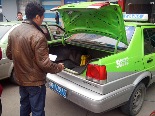 長運出租車分公司的管理員正在進行車輛技術(shù)狀況檢查