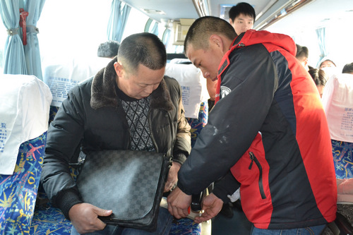“加班到金華的駕駛員已經報班!”1月17日13:00分,駕駛員曾國偉準時來到車隊簽到,半個小時前,曾國偉還在親戚家喝喜酒,接到13:30要開加班車的任務,他沒來的及等吃完飯就趕到了單位。同事問起來時,他幽默地說:“春運了,隨時都有加班任務,哪敢隨意喝酒啊,這可是系著一車旅客的安全?!?br/>說話的工夫,他來到班車上試了試燈光,檢查了機油和水位,試發(fā)一下發(fā)動機,隨后又敲了敲輪胎,各項正常。開車前,他拿起了茶杯,卻只是稍稍抿了一小口,出車前,不敢多喝水,生怕影響行車,這也是他多年的習慣。隨著一聲哨響,曾國偉駕駛的班車也緩緩地駛出了客運西站。
