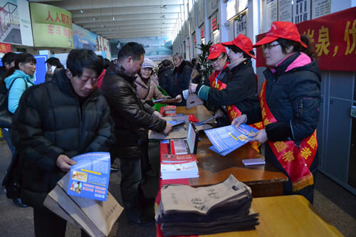 為進一步建設(shè)平安蓮都,共創(chuàng)和諧社會,2月13日上午,東站借春運來往旅客多、宣傳效果廣泛的契機,聯(lián)合巖泉街道在東站候車廳內(nèi)向廣大旅客宣傳“珍愛生命,遠離毒品”。社區(qū)禁毒干事趙素珍女士和東站春運志愿者服務(wù)隊的隊員們,向廣大旅客、車主和職工發(fā)放了禁毒宣傳資料手冊、青少年禁毒漫畫等禁毒宣傳資料;同時還給現(xiàn)場的旅客耐心講解了毒品的危害。通過此次宣傳活動,使廣大旅客進一步認清毒品的危害,增強自我保護的意識,自覺抵制和遠離毒品。