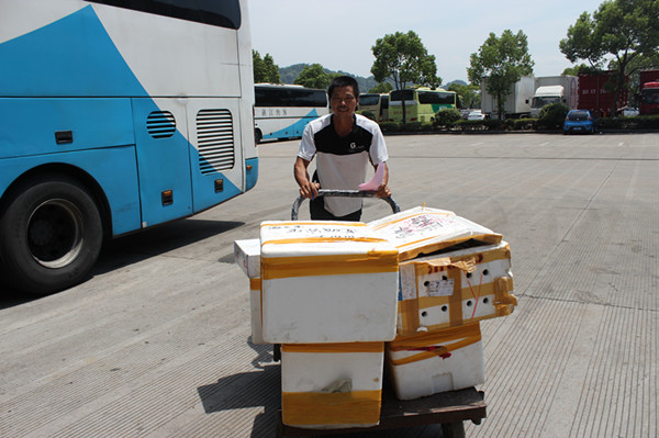 要論炎夏最辛苦的崗位,很多人自然會想到行李房的裝卸工。行包裝卸工冒著熱浪辛勤作業(yè),準(zhǔn)時地收發(fā)一批批貨物。行包房收發(fā)的貨物很多都是大件貨物,輕的幾十斤,重的二、三百斤,一批貨物裝卸下來,裝卸工的衣服都能擰出水來。37度的高溫,平常人在太陽底下站上幾分鐘都受不了,行包裝卸工卻要負(fù)重往返在車輛和行李房之間,絕大部分時間都是在露天發(fā)車區(qū)作業(yè),其辛苦可想而知。雖然被熱浪蒸得暈暈乎乎的,他們卻一點(diǎn)也不敢大意。這么熱的天氣,海鮮水產(chǎn)、鮮活貨物很容易腐敗變質(zhì),一個不小心錯發(fā)誤發(fā)帶給客戶的可能不僅是時間精力的損耗,更會造成客戶直接的經(jīng)濟(jì)損失。所以即使再熱再辛苦,清點(diǎn)、裝卸、核對,整個流程他們絲毫沒有一點(diǎn)含糊!