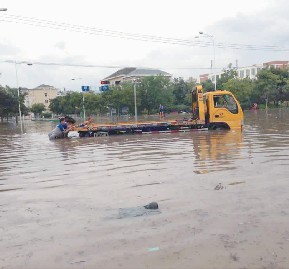 20日的洪水從清晨開(kāi)始就一直處于上漲過(guò)程當(dāng)中,市區(qū)多處受淹嚴(yán)重。為更快速的搶救進(jìn)水車輛,安撫客戶情緒,在指揮中心的統(tǒng)一指揮下,多組救援小組深入各受災(zāi)片區(qū),他們與洪水周旋,在水中作戰(zhàn),開(kāi)展搶救工作 。在水東、在夏河、在三巖寺,救援小組一方面與客戶積極聯(lián)系溝通,了解受災(zāi)情況; 一方面趟入渾濁的洪水中積極找尋施救線路。因水位不斷上漲,水東大橋、三巖寺等路段交通相繼中斷,施救車輛根本就進(jìn)不了受災(zāi)片區(qū),已進(jìn)入受災(zāi)片區(qū)的也開(kāi)展不了救援工作,個(gè)別施救車輛還受困于現(xiàn)場(chǎng),這可急壞了救援人員和客戶。隨著時(shí)間的推移,指揮中心積壓的待救援信息越來(lái)越多。水不退,車就進(jìn)不去,光靠人在水中推是解決不了問(wèn)題的,怎么辦? 伊翔公司一方面隨時(shí)關(guān)注水位情況,一方面積極向各方求援,待水位梢有下降,適合搶救時(shí),能迅速全面開(kāi)展搶救工作。