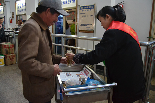 1月27日凌晨,一場不期而至的冷空氣光顧山城麗水,氣溫明顯下降。一大早,東站“流動之家”服務(wù)班的工作人員就準備好熱氣騰騰的茶水,穿梭于候車室免費為旅客送上,井然有序的候車室里,彌漫著濃濃的暖意。