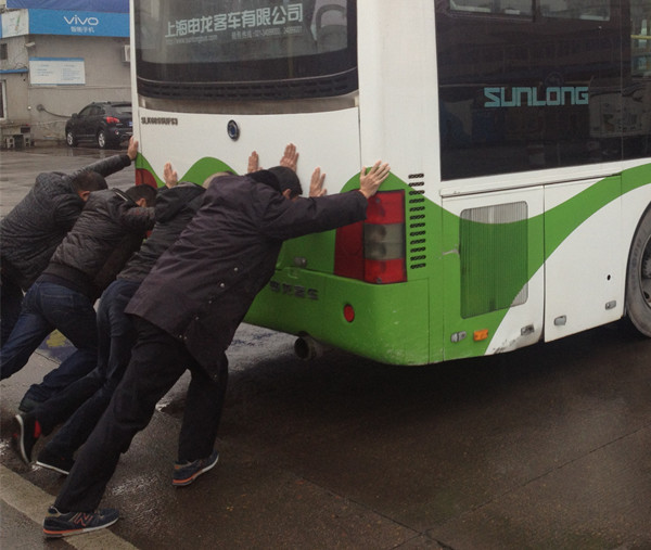 早上6時(shí)40分,開207線路的公交司機(jī)高師傅來到客運(yùn)東站站前廣場,和往常一樣,準(zhǔn)備出車。插入鑰匙,轉(zhuǎn)動(dòng)啟動(dòng)按鈕,之前的發(fā)動(dòng)機(jī)轟鳴聲卻沒聽到,連續(xù)轉(zhuǎn)了幾次,車子還是沒反應(yīng),高師傅心里隱隱覺得肯定是出問題了。經(jīng)過檢查,發(fā)現(xiàn)是由于天氣太冷,電瓶電力不足無法啟動(dòng)。他馬上打電話找來了車隊(duì)的兩名同事,一人把方向盤,兩人推車,可車子移動(dòng)過于緩慢,根本不可能通過人工打火啟動(dòng)。就這樣,207路的公交車停在了東站站前廣場的中央占著通道,影響了出站的交通。