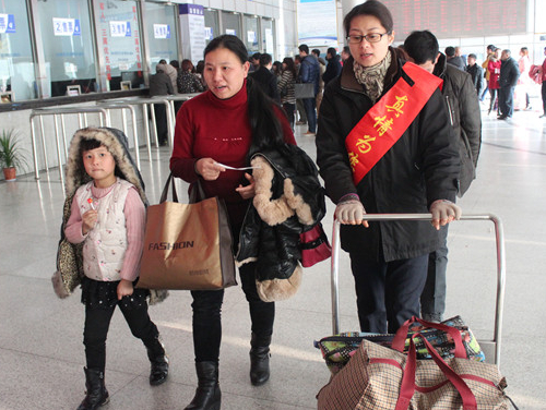 隨著2月4日“青春志愿行,溫暖回家路”2015年志愿者服務(wù)春運(yùn)“暖冬行動(dòng)”的啟動(dòng),2月5日,客運(yùn)西站黨員志愿者服務(wù)隊(duì)和“流動(dòng)之家”志愿者服務(wù)隊(duì)也正式拉開(kāi)志愿者服務(wù)春運(yùn)“暖冬行動(dòng)”的序幕。志愿者們將在整個(gè)春運(yùn)期間,在售票廳、進(jìn)站口、服務(wù)臺(tái)等位置,為旅客提供咨詢(xún)、引導(dǎo)、扶老攜幼,自助售票導(dǎo)購(gòu)等服務(wù)。