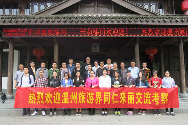 4月15日集散中心組織溫州國旅、溫州交運、精誠國旅等數十家知名旅行社相關人員赴云和實地踩線。麗水市旅游局副局長陳志偉、麗水市農家樂協會副會長林駒、古堰畫鄉(xiāng)管委會副主任楊杰、云和縣旅游局副局長梁朝偉等人親臨現場指導,并在產品推薦會上作重要講話。溫州各旅行社代表也紛紛表示,將積極配合,與麗水市旅游集散中心一起做好市場營銷工作。