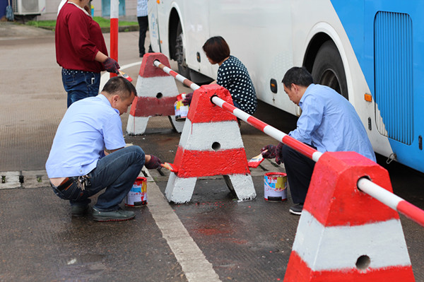 為響應(yīng)總公司“開源節(jié)流,挖潛增效”的號(hào)召,也為配合客運(yùn)東站的“安全生產(chǎn)月”活動(dòng),發(fā)揚(yáng)“自己動(dòng)手,豐衣足食”的勞動(dòng)精神,在東站黨支部委員金旭陽的倡導(dǎo)下,東站的黨員、團(tuán)員、入黨積極分子及普通員工在6月5日上午早早地來到東站,進(jìn)行第二波自己動(dòng)手挖潛增效活動(dòng),利用自己的休息時(shí)間對(duì)東站年久褪色的隔離墩進(jìn)行油漆刷新。