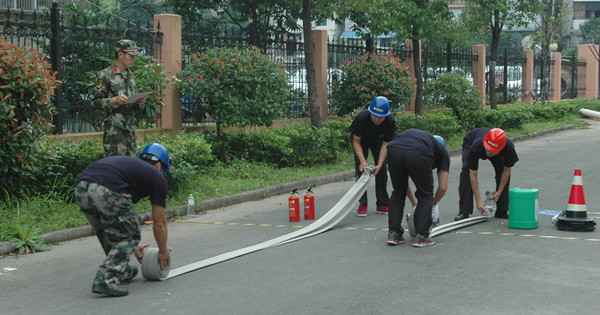 11個代表隊趕赴現(xiàn)場列隊集結(jié)完畢后,開始科目二演練。蓮都區(qū)消防大隊官兵首先給大家講解和示范了演練內(nèi)容,然后各參演代表隊現(xiàn)場抽簽排定出場順序。首先出場的是房產(chǎn)傳媒聯(lián)合代表隊。一聲令下,四個隊員箭步?jīng)_向器材存放區(qū),各自拿起相應的器材沖向操作區(qū),兩位隊員放置泡沫桶、警戒桶,兩位隊員打開水帶、接好水槍。完成操作后,又緊急趕往滅火區(qū)。兩位隊員依舊迅速放置好泡沫桶、警戒桶,兩位隊員手拎滅火器,迅速拔掉安全插銷,從上風口向“起火點”噴射滅火劑。經(jīng)過奮力撲救,火勢被完全撲滅。然后隊員們按原路返回,將器材放回存放區(qū)。其他10個代表隊也依次出場。