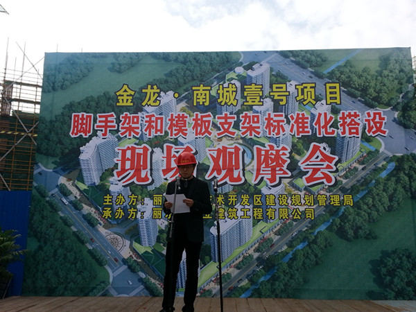 12月3日,由麗水經(jīng)濟(jì)技術(shù)開發(fā)區(qū)建設(shè)規(guī)劃管理局主辦的建筑施工現(xiàn)場(chǎng)觀摩會(huì)在金龍?南城壹號(hào)項(xiàng)目工地現(xiàn)場(chǎng)召開。市建設(shè)局領(lǐng)導(dǎo)、開發(fā)區(qū)建規(guī)局領(lǐng)導(dǎo)、開發(fā)區(qū)在建和即將開建項(xiàng)目的建設(shè)單位、監(jiān)理單位、施工單位共100余名代表走進(jìn)項(xiàng)目現(xiàn)場(chǎng),全方位觀摩了南城壹號(hào)項(xiàng)目的安全標(biāo)準(zhǔn)化工地、項(xiàng)目精細(xì)化管理、人性化服務(wù)、特別是對(duì)腳手架和模板支架標(biāo)準(zhǔn)化搭設(shè)等內(nèi)容。