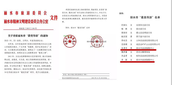 近日,麗水市旅游委員會、麗水市精神文明建設(shè)委員會辦公室發(fā)文表彰麗水市“最美導(dǎo)游”,集散中心朱勇華、李穎兩位導(dǎo)游被授予麗水市“最美導(dǎo)游”榮譽稱號。本次麗水市“最美導(dǎo)游”評選經(jīng)群眾推薦、組織審核、媒體公示、綜合評定等程序,最終產(chǎn)生十名麗水市“最美導(dǎo)游”。