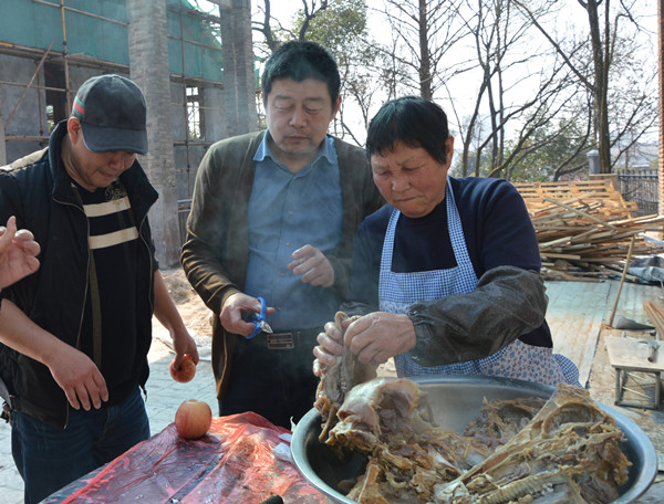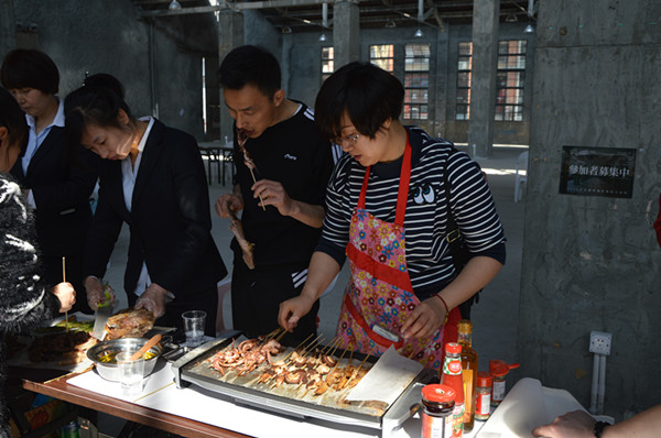 這邊包餃子的問題正討論的激烈,那邊熱氣騰騰的豬頭也出鍋了?!把?,這么大的豬頭,小時(shí)候過年的感覺”?!皩Π。瑢Π?,這種氣氛,這種味道,太有紀(jì)念意義了”?!皝韥韥恚遗膹堈掌?,微信朋友圈曬一曬”。黃色餃子、綠色餃子、紅色餃子、紫色餃子相繼的出鍋了,燒烤的食品也相繼出爐,大家互相品評,因?yàn)槎际亲约簞邮謪⑴c,一切都變成了美食。