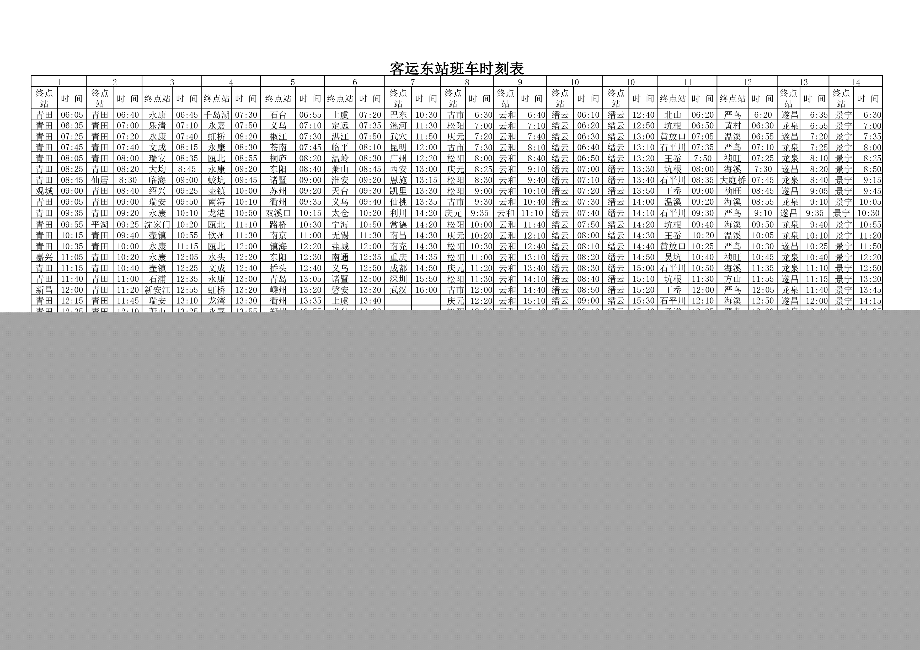 1月10日起東站班車時(shí)刻表