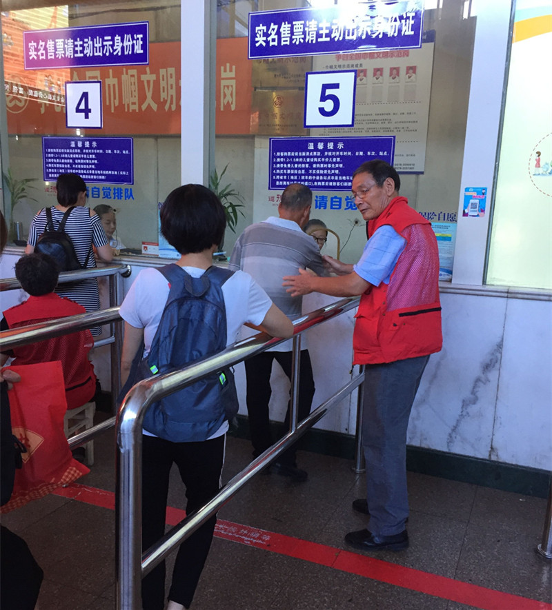 為了更好的推進創(chuàng)全國文明城市的工作,加大對不文明現(xiàn)象的勸導(dǎo),從7月17日開始,老年大學(xué)的“紅馬夾”志愿者開始在東站志愿服務(wù),他們將對在車站內(nèi)發(fā)生的不遵守一米線排隊秩序、隨地亂扔垃圾、隨地吐痰、躺在座椅上睡覺等所有不文明現(xiàn)象進行勸導(dǎo)。