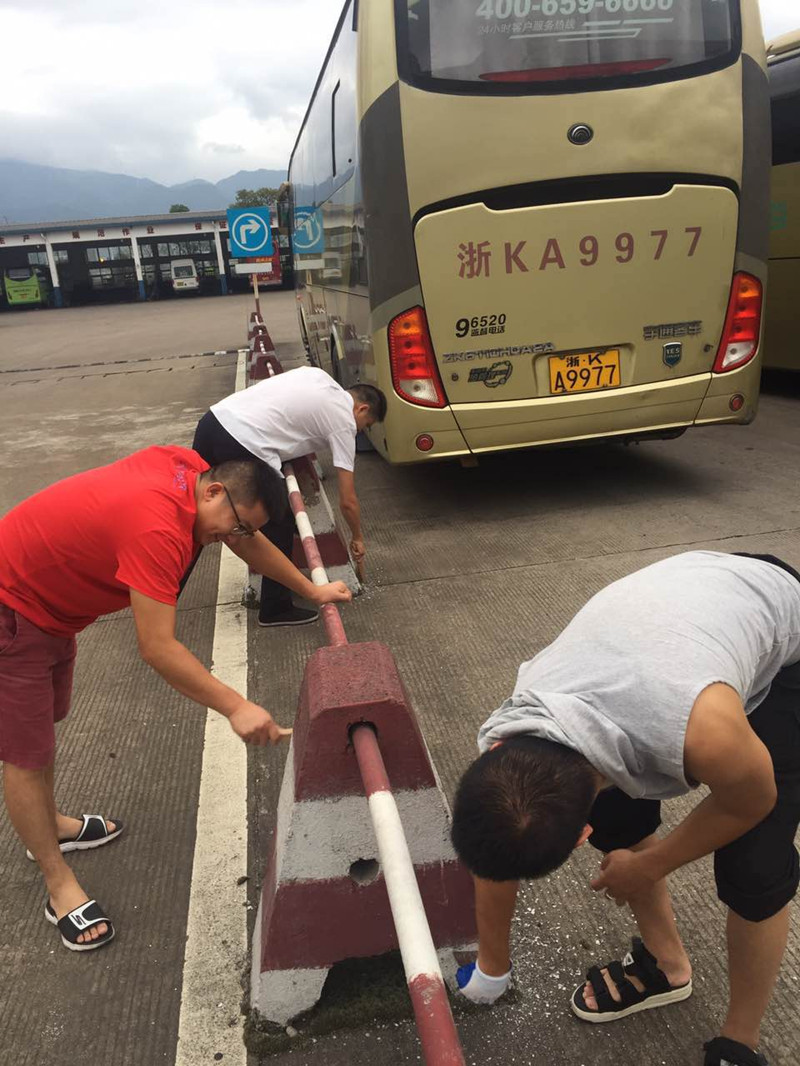站場內(nèi)的隔離設(shè)施由于長時(shí)間的日曬雨淋,出現(xiàn)了嚴(yán)重的油漆脫落現(xiàn)象。8月31日早上6點(diǎn),志愿者們又拿來鋼絲刷,先把隔離墩上還沒脫落完的油漆刷干凈,再用調(diào)好的油漆,重新粉刷隔離設(shè)施。