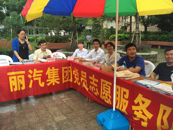 活動當(dāng)天,麗汽集團的黨員們一早就來到燈塔公園,面向廣大群眾展開了汽車班車時刻咨詢、汽車銷售維修、汽駕培訓(xùn)咨詢、旅游咨詢、房產(chǎn)銷售咨詢等多項服務(wù)。雖然天空中飄著雨,但黨員同志和社區(qū)群眾的熱情不減,短短半天時間,黨員們共向到場群眾發(fā)放宣傳冊頁及資料2000份,解答咨詢60人次,贈送雨傘200余把,紙巾100盒,環(huán)保袋500只,惠及群眾800人次。