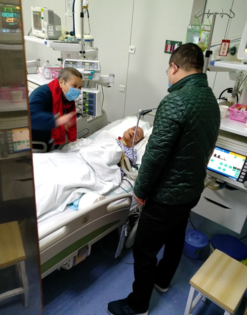 在溫州中醫(yī)院監(jiān)護室,一直處于半昏迷狀態(tài)的董周英當(dāng)依稀聽知公司黨委書記、董事長前來看望他時,興奮地睜開了雙眼,流露著滿眼喜悅。葉茂輕輕握著董周英的手,衷心希望董老能提振信心,勇敢的邁過眼前這道坎。