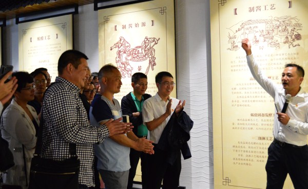 調(diào)研最后一站,大家來到位于九龍濕地畔的麗水魚躍1919文化產(chǎn)業(yè)園。在產(chǎn)業(yè)園,百年魚躍的第十代掌門人陳旭東從“勺?!敝f引入,給大家講述了麗水老字號“魚躍”品牌的傳承與浴火重生的故事,還有麗水人耳熟能詳?shù)尼u油故事。