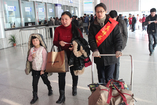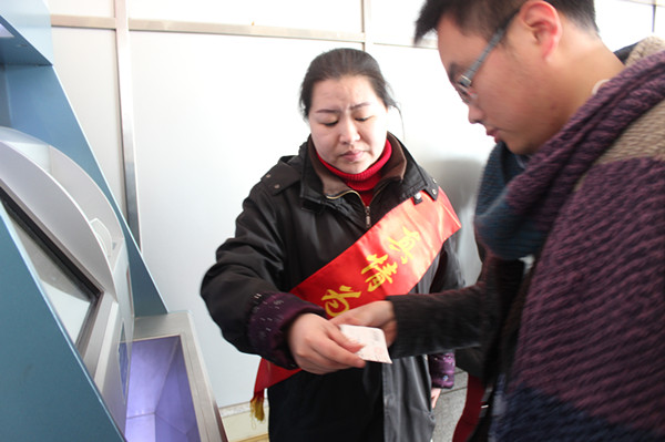 隨著2月4日“青春志愿行,溫暖回家路”2015年志愿者服務(wù)春運(yùn)“暖冬行動(dòng)”的啟動(dòng),2月5日,客運(yùn)西站黨員志愿者服務(wù)隊(duì)和“流動(dòng)之家”志愿者服務(wù)隊(duì)也正式拉開(kāi)志愿者服務(wù)春運(yùn)“暖冬行動(dòng)”的序幕。志愿者們將在整個(gè)春運(yùn)期間,在售票廳、進(jìn)站口、服務(wù)臺(tái)等位置,為旅客提供咨詢(xún)、引導(dǎo)、扶老攜幼,自助售票導(dǎo)購(gòu)等服務(wù)。
